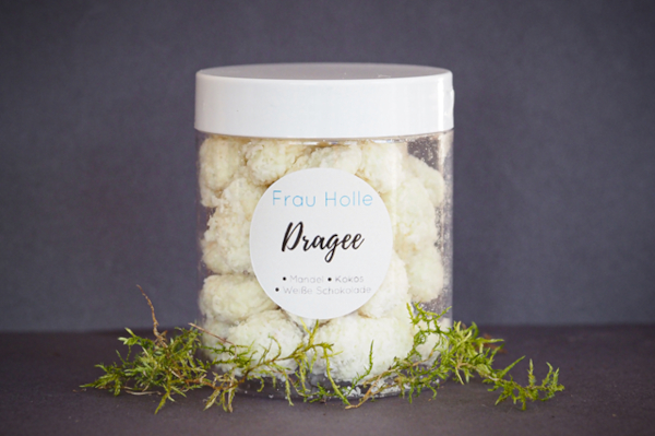 Im Winter wie im Sommer geröstete Mandeln überzogen mit weißer Schokolade und Kokosraspeln.
